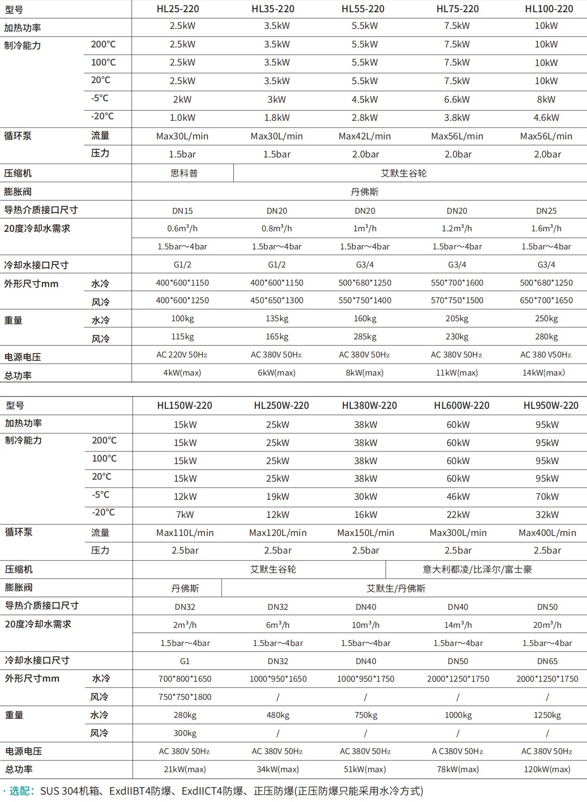 HL950W-22095kW95kW95kW95kW70kW32kWMax400L/min2.5bar意大利都凌/比澤爾/富士豪艾默生/丹佛斯DN5020m3/h1.5bar~4barDN652000*1250*1750/1250kg/AC 380V 50Hz120kW(max)